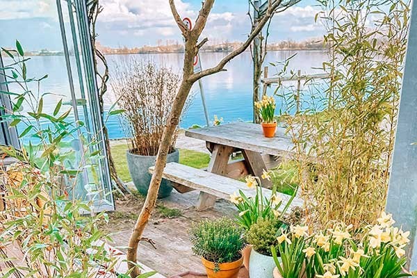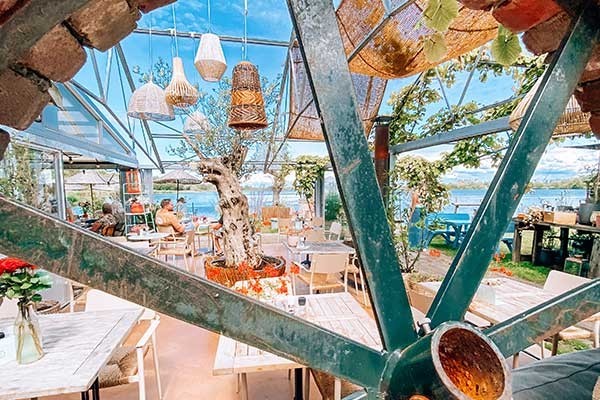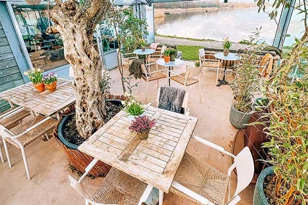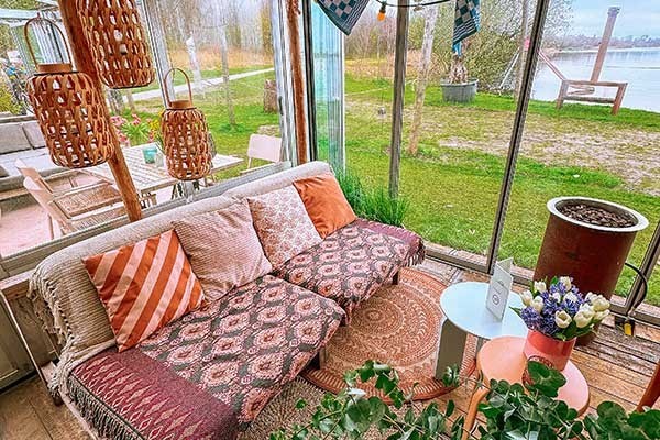 Das gemütliche Restaurant verfügt über diverse angenehme Sitzgelegenheiten, und an kalten Tagen kann man sich vor dem offenen Kamin wärmen. Zudem gibt es einen Wintergarten mit der schönsten Aussicht über den holländischen Tulpengürtel. Im Winter wird der Wintergarten herrlich mit Heatern beheizt und im Sommer kann das Dach geöffnet werden, sodass man die Sonne genießen kann. Bei gutem Wetter können Sie sich entspannt auf der weitläufigen Terrasse mit vielen Sitzplätzen und Picknick-Tischen am Wasser niederlassen. Die nette Bedienung und die ungezwungene Atmosphäre rundet das Erlebnis ab.
